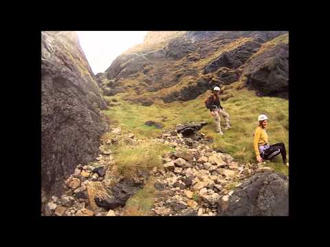 Descent is by scramble and a short abseil down from the lowest point of the summit ridge. (ab tat placed 24/08/14)